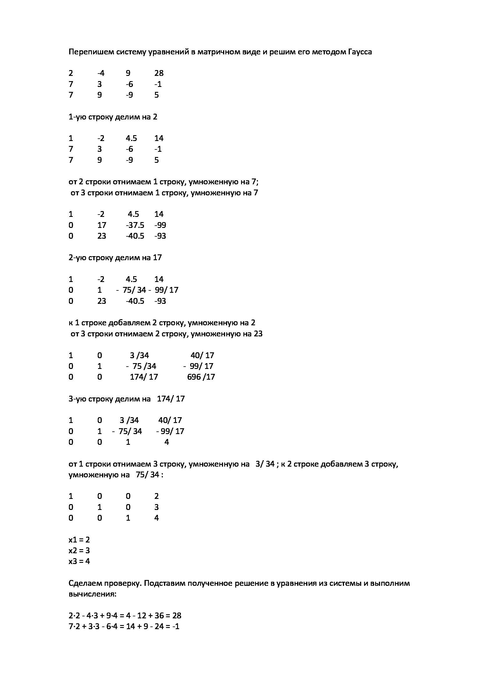 Перепишем систему уравнений в матричном виде и решим его методом Гаусса