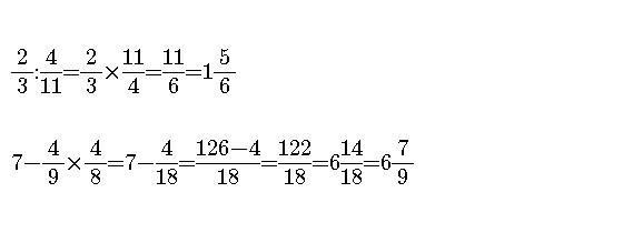 2/3 : 4/11 = 2/3*11/4=1/3*11/2=11/6