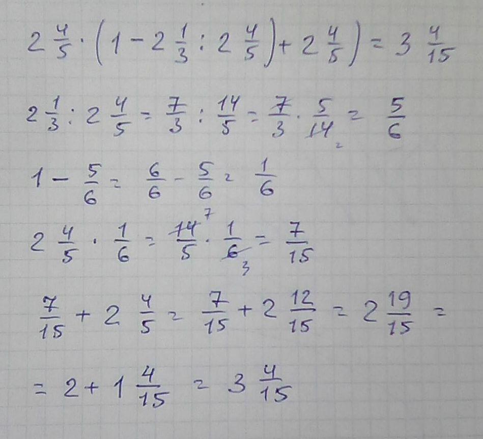 4) 7/15+2 4/5=7/15+2 12/15=2 19/15=3 4/15 - это ответ.