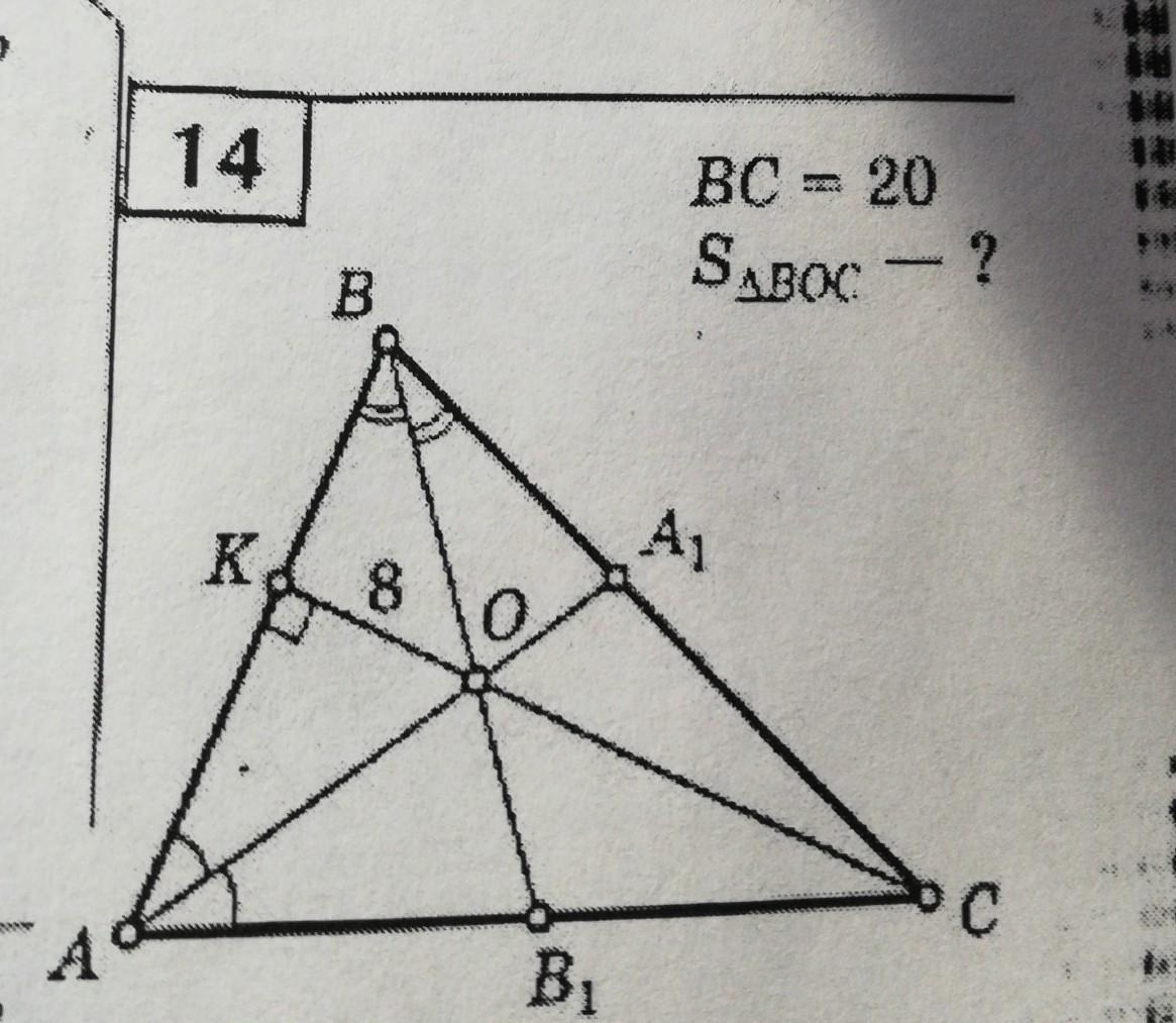 Рассм. биссектрису ВО. Т.О удалена от стороны ВА на 8 единиц. ОК⊥ВА по условию.