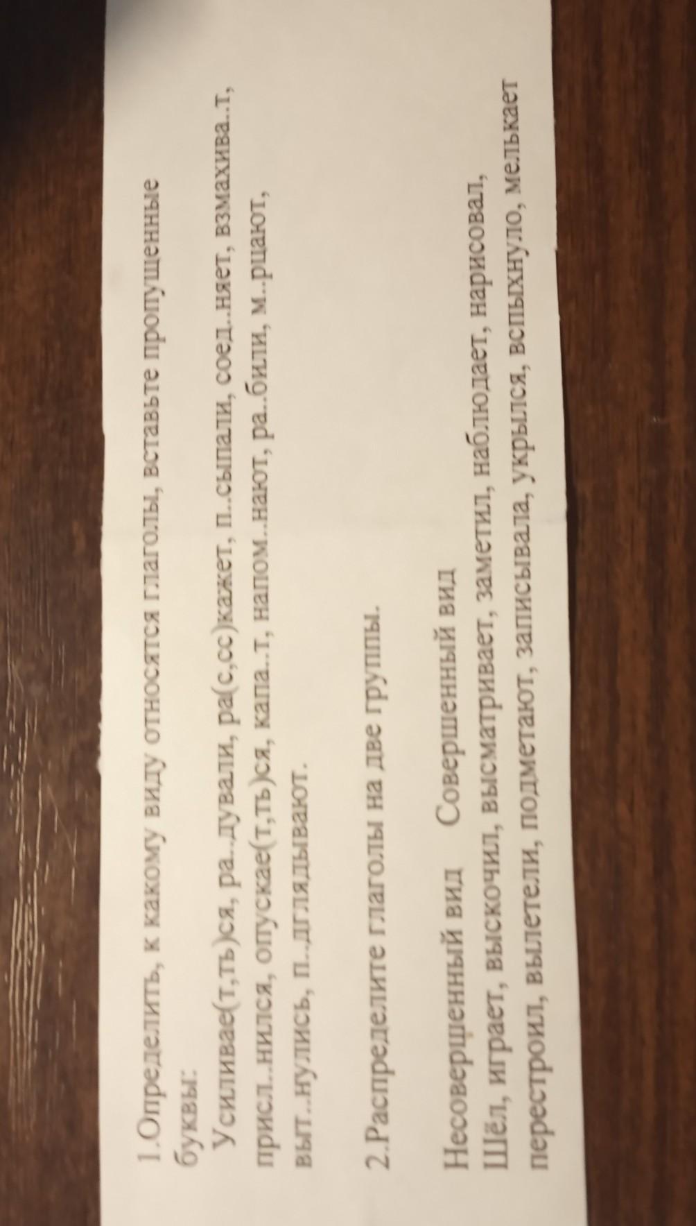 1.Определить, к какому виду относятся глаголы, вставьте пропущенные