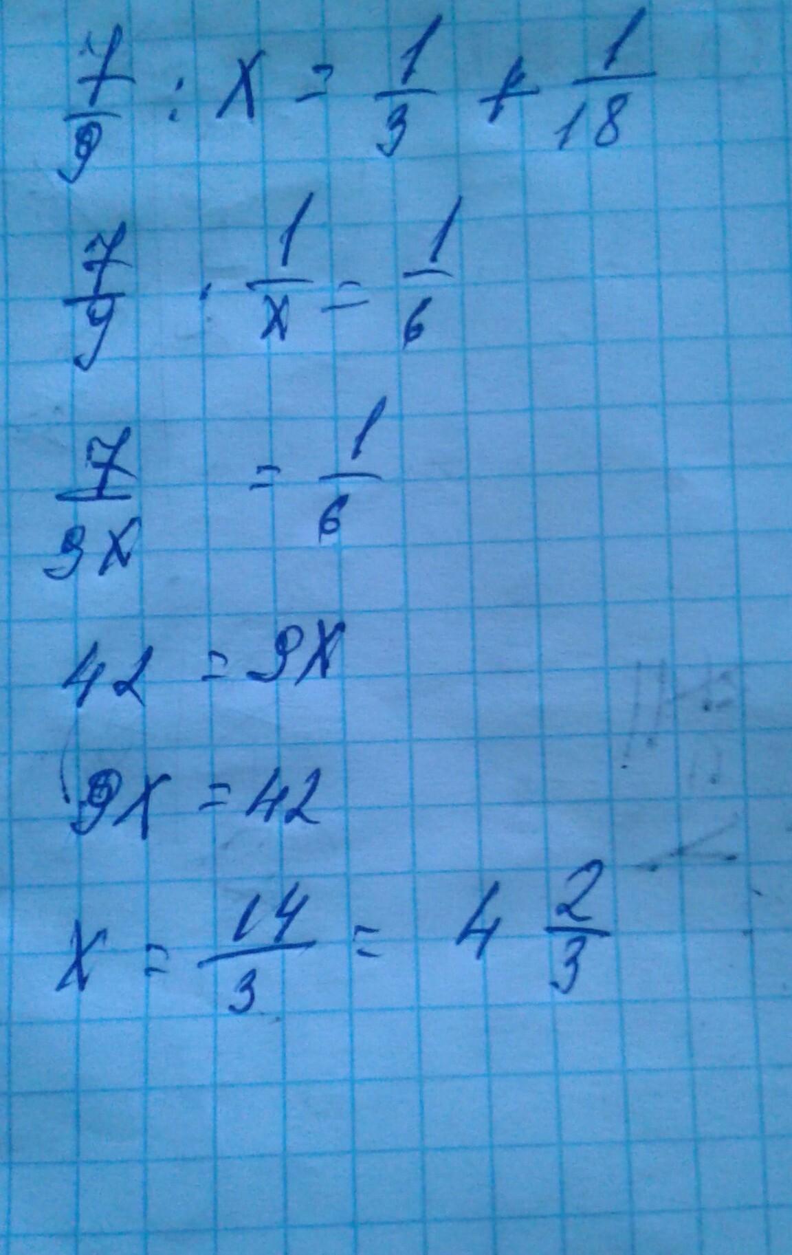 7/9 * 1/х = 7/18 ---> 1/х = 1/2 ---> х = 2.