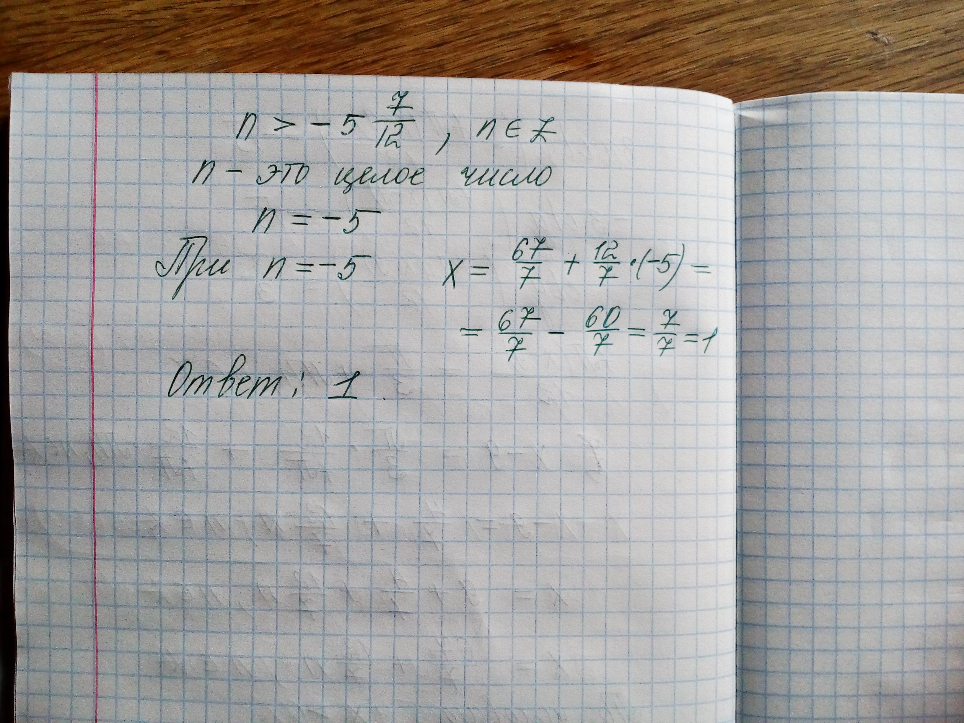 При k = - 5 будет x = 9 + (4-60)/7 = 9 - 56/7 = (63 - 56)/7 = 1 > 0