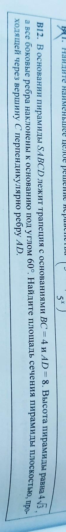 Отсюда вывод: нижнее основание трапеции - диаметр, а боковое ребро ASD - вертикально. Высота пирамиды совпадает с высотой этой грани.