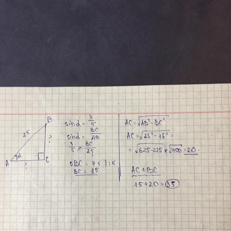 ABC, если sin α=3/5. В ответ запишите сумму этих длин.