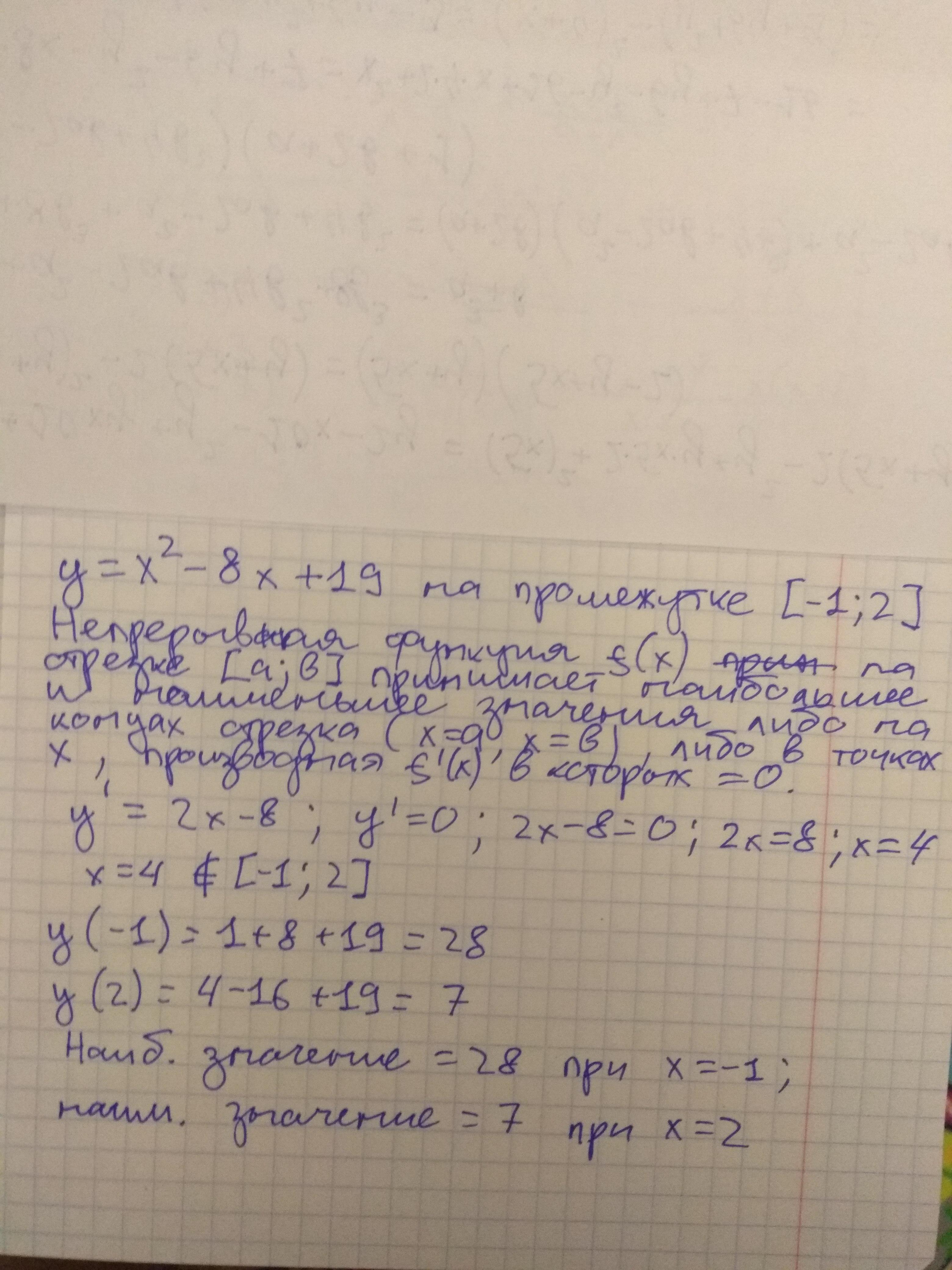 y(-1)=-1²-8*(-1)+19=1+8+19=28 - наибольшее значение функции при х=-1