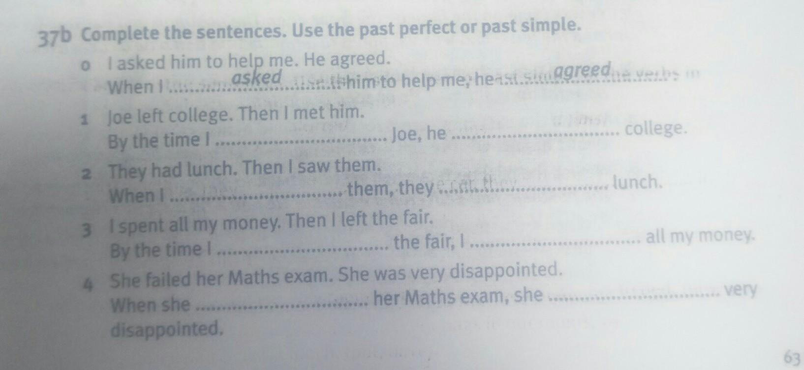 1. met; had left; 2. saw; had had; 3. left; had spent; 4. failed, was disappointed