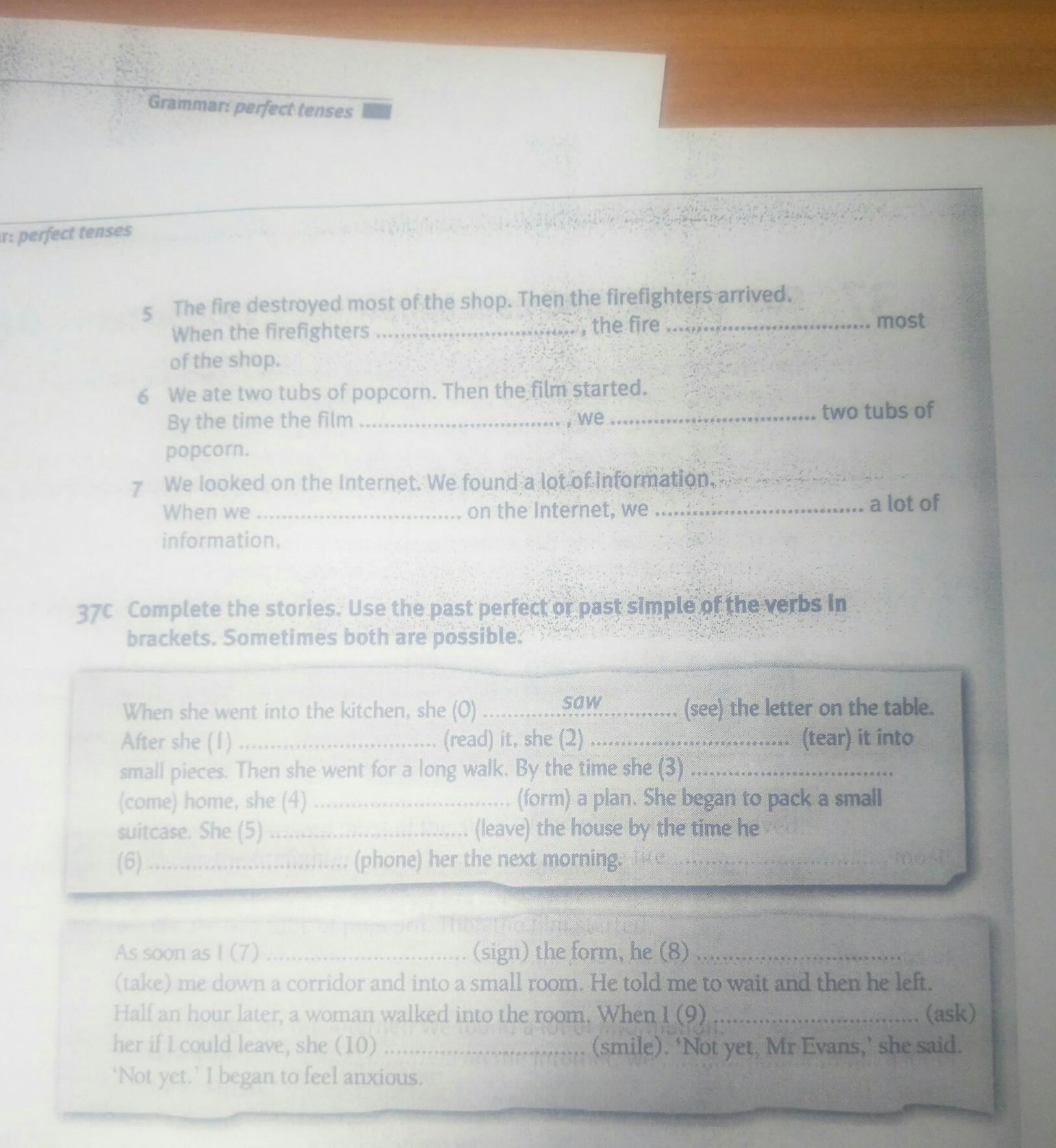 5. arrived, had destroyed; 6. started; had eaten; 7. looked, found