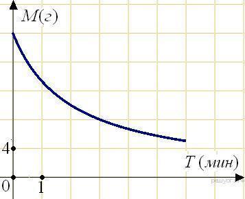 В ходе химической реакции количество исходного вещества (реагента), которое еще не вступило в реакцию, со временем постепенно уменьшается. На рисунке эта зависимость представлена графиком. На оси абсцисс откладывается время в минутах, прошедшее с момента начала реакции, на оси ординат — масса оставшегося реагента, который еще не вступил в реакцию (в граммах). Определите по графику, сколько граммов реагента вступило в реакцию за три минуты?