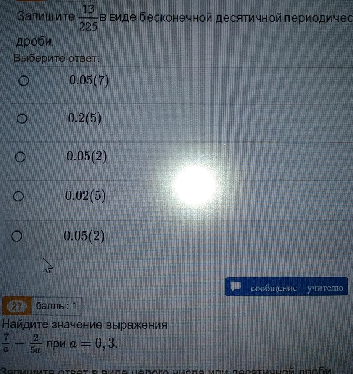 И на нижний ответ 22.Если а=0.3,то 5а=1.5Приводим к общему знаменателю: 1.5.Тогда : 35/1.5 - 2/1.5=22