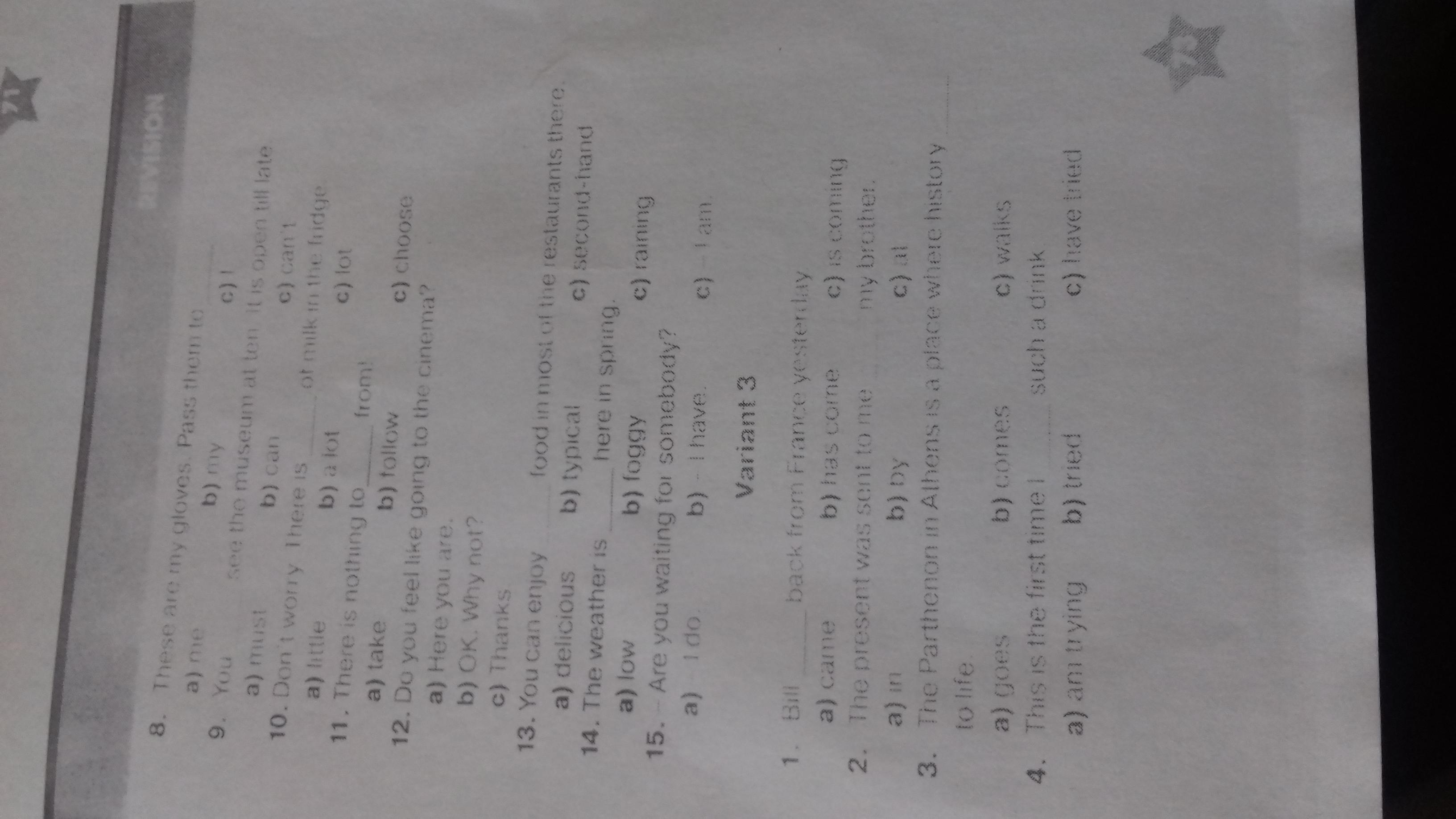 1a 2b 3b 4c 5b 6b 7b 8b 9a 10b 11a 12b 13 c 14 b 15 a