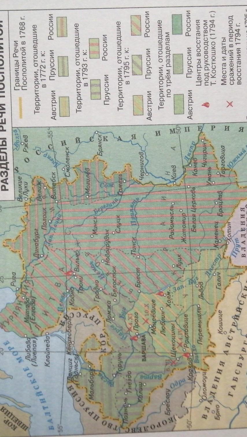 Разделы Речи Посполитой. Найти территории приесоединенные к России в разные периоды (реки,города).