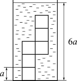 Фигурка, склеенная из 66 одинаковых кубиков с длиной ребра a = 2a=2 см, приклеена ко дну сосуда и находится в воде, как показано на рисунке. Высота уровня воды равна 6a6a. Определите силу давления воды на переднюю (обращённую к Вам) поверхность фигурки. Ответ дайте в миллиньютонах. Атмосферное давление не учитывайте.