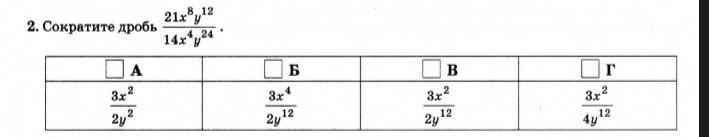 21 и 14 сокращаем на 7, получаем 3 и 2 соответственно. При сокращении степеней, от степени в числителе отнимаем степень в знаменателе. (8-4, 12-24). Если число положительное, степень остается в числителе, если отрицательное - в знаменателе.