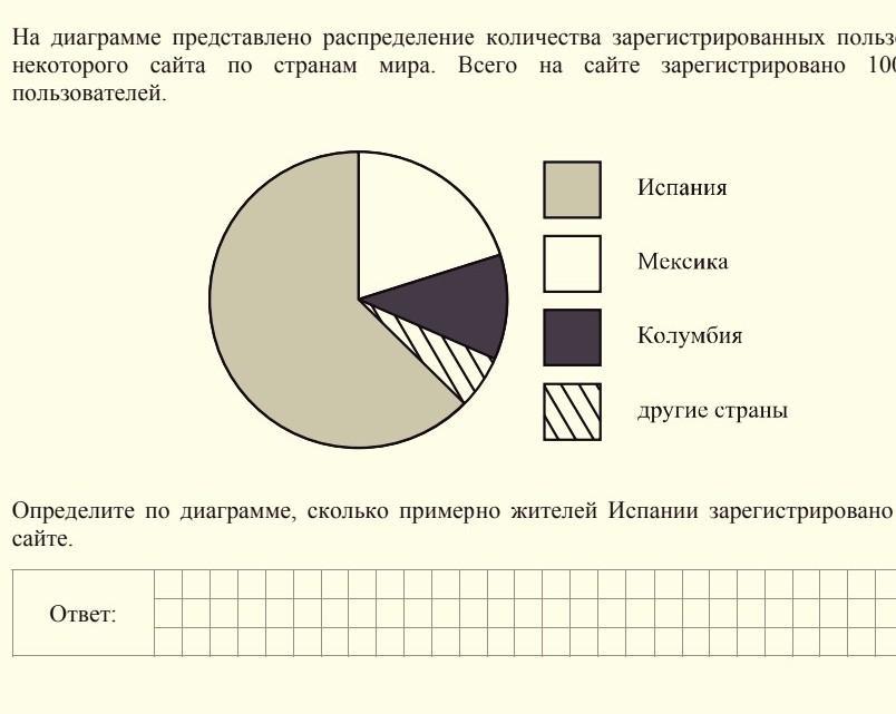 Нужно определить, сколько примерно жителей Испании зарегистрировано на сайте, всего 100 000 пользователей.