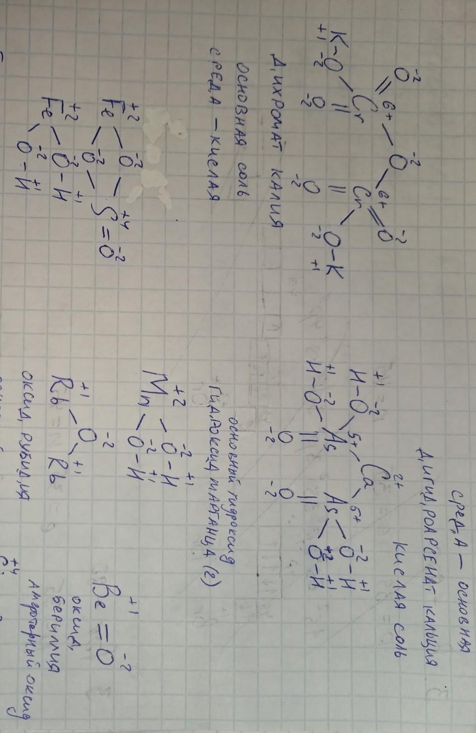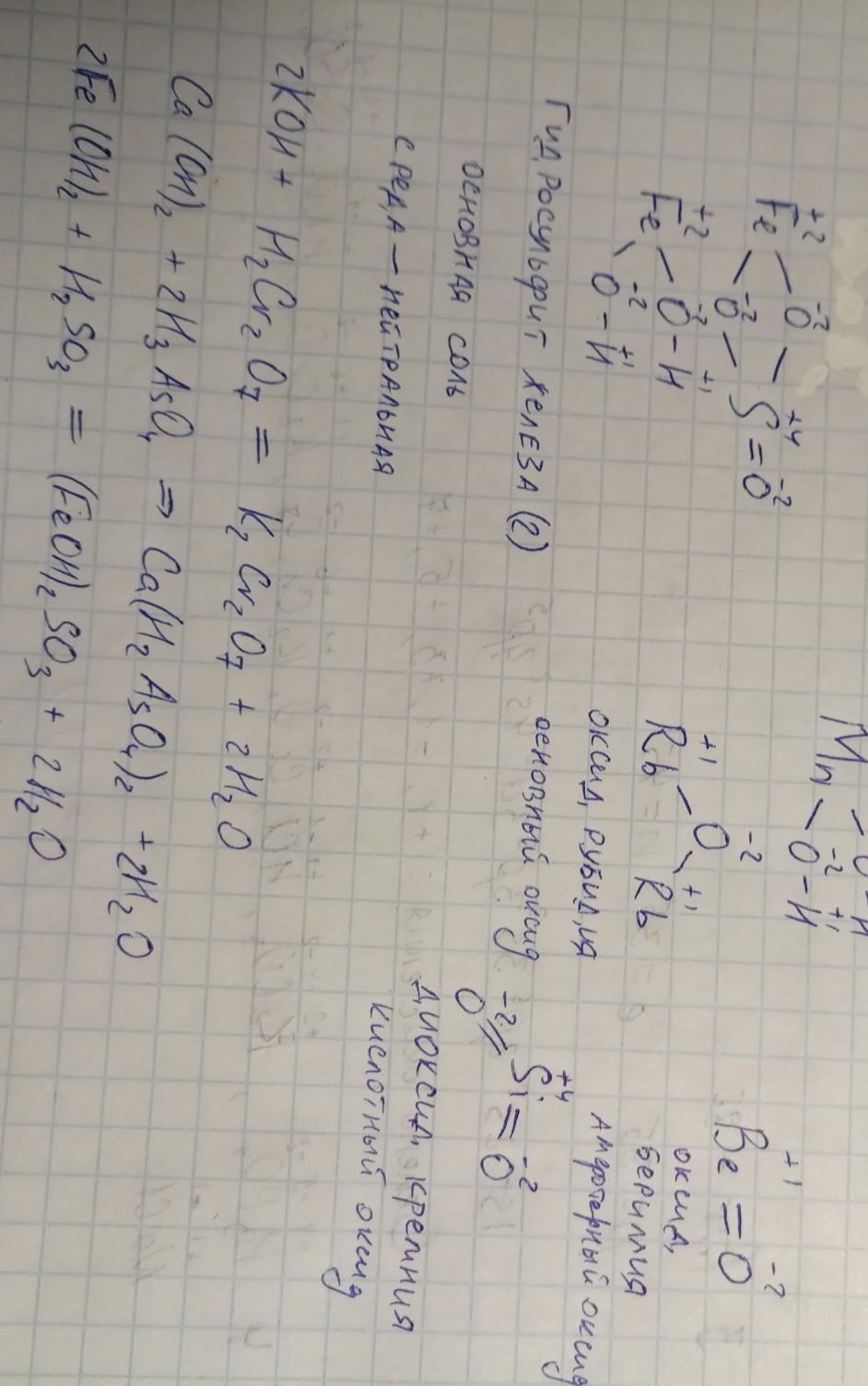 K2Cr2O7; Ca(H2AsO4)2; (FeOH)2SO3; Mn(OH)2; BeO; Rb2O; Si02.