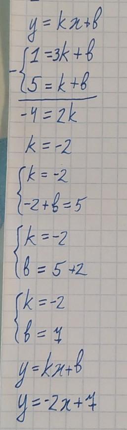 1) т.к. нам известны точки, через которые проходит прямая, подставляем их значения и получаем систему уравнений