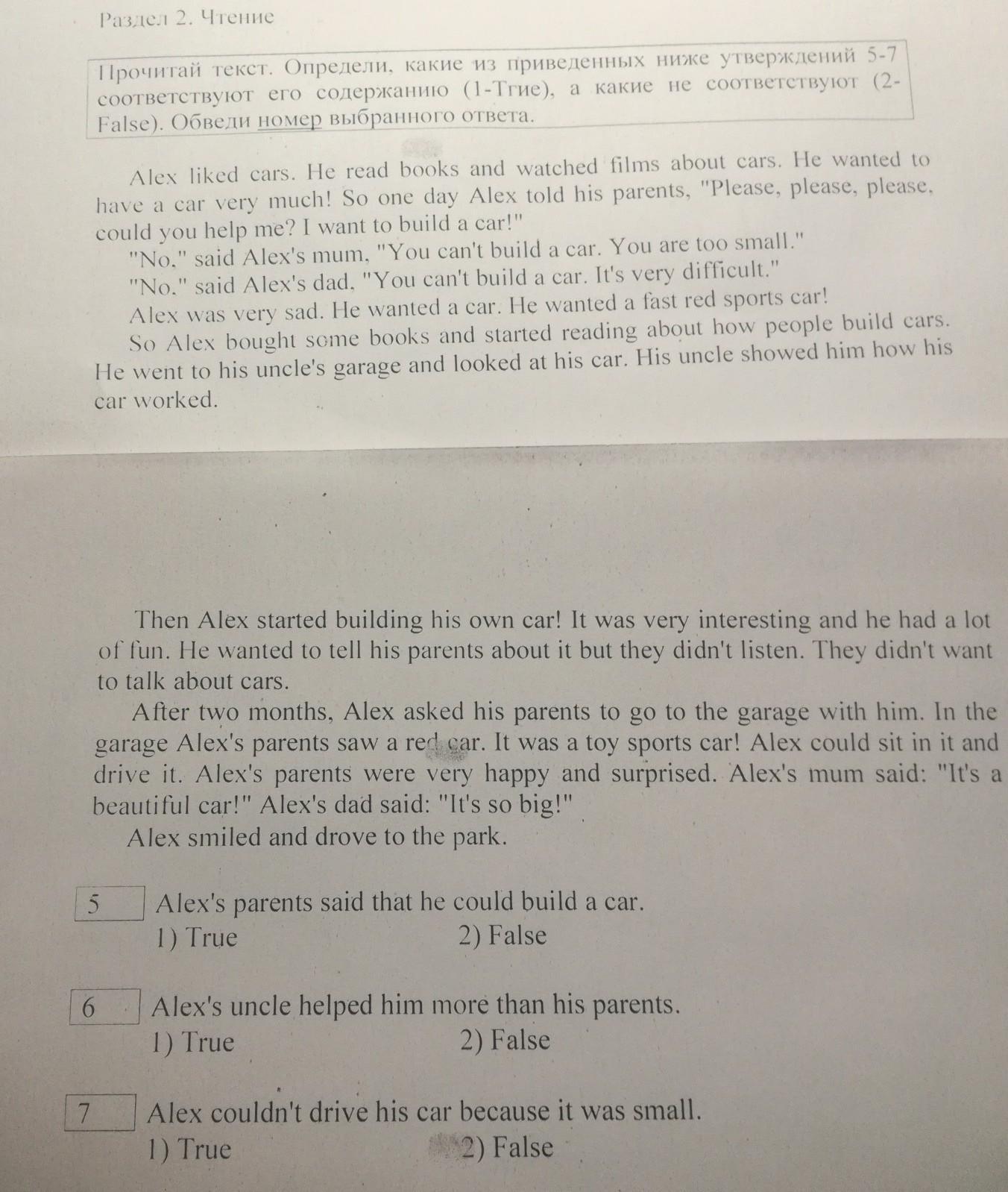 7) Алекс не мог водить машину, потому что она была маленькой.
