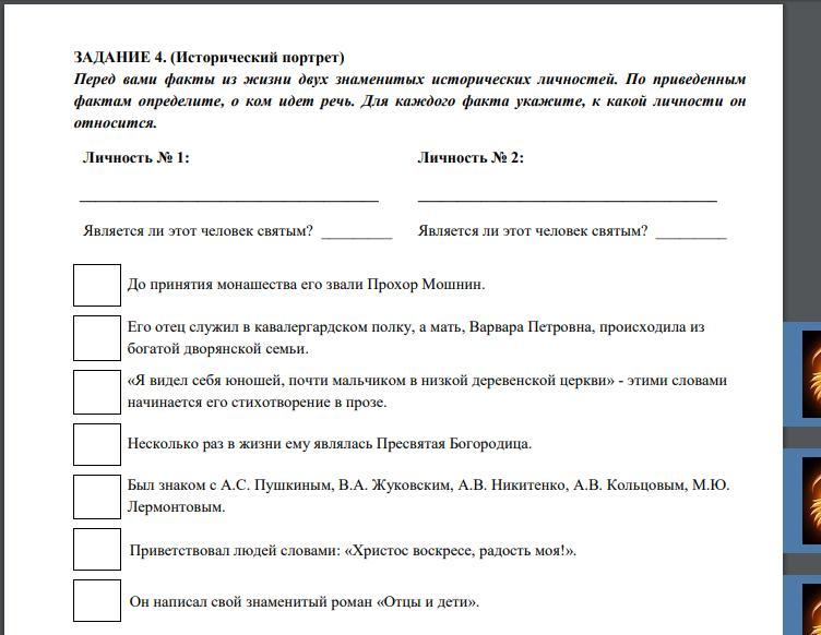надо написать кто является личностью №1 и номера фактов, относящихся к нему. Аналогично с личностью №2
