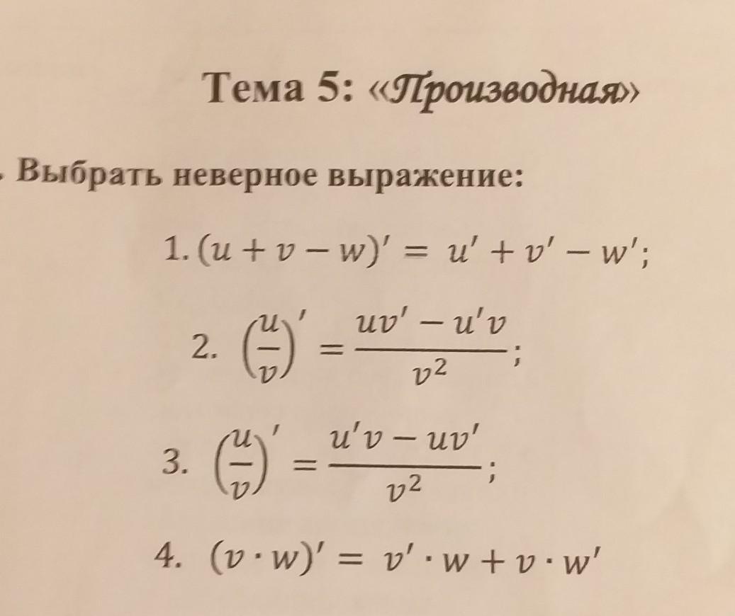2 - неверное, потому что сначала берётся производная числителя умноженная на знаменатель, а потом числитель умноженный на производную знаменателя.