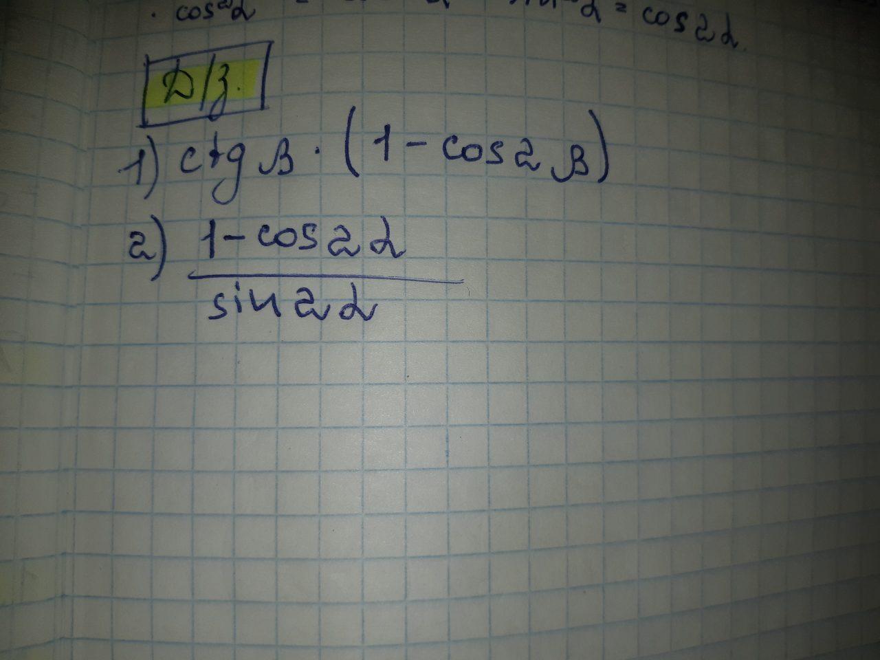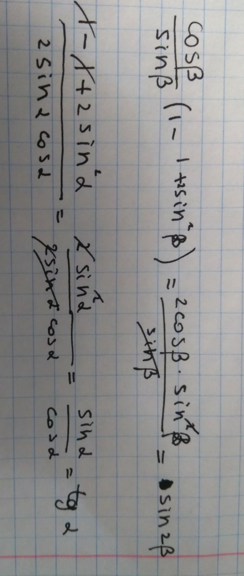 1) Ctgβ (1 - Cos²β + Sin²β) = Cosβ/Sinβ * 2Sin²β = 2SinβCosβ = Sin2β