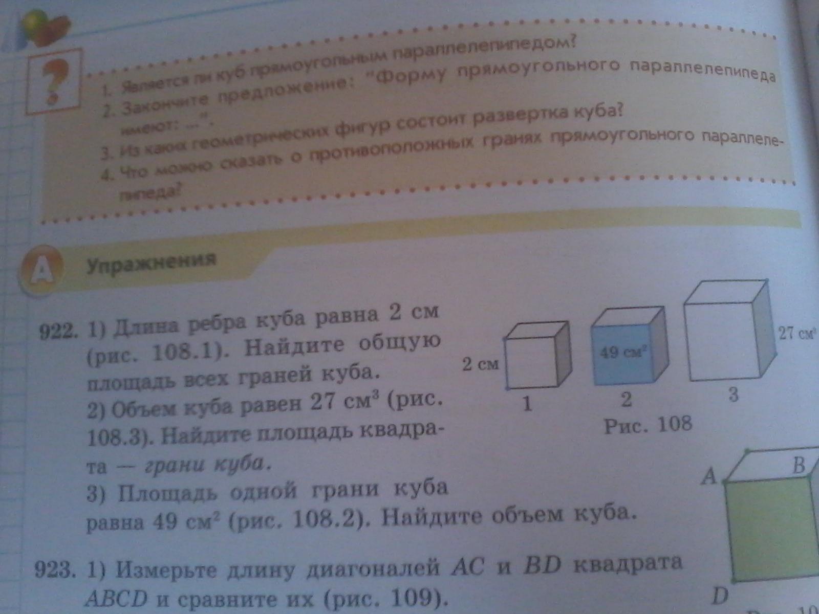 1) S=6*S(грани)=6*4=24