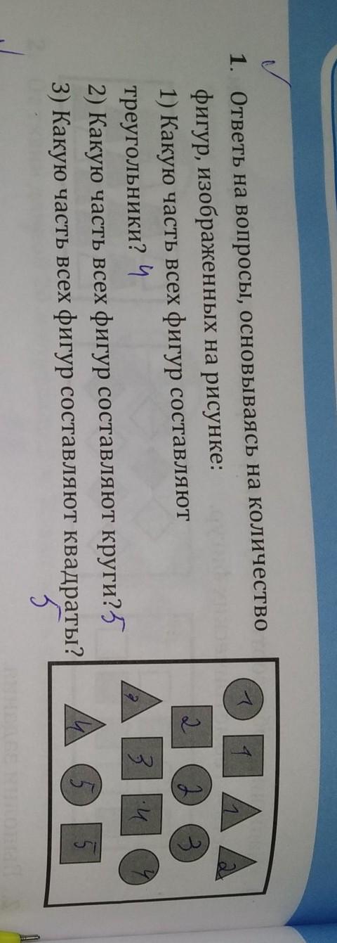 1) Всего фигур 14, треугольников - 4, значит они составляют