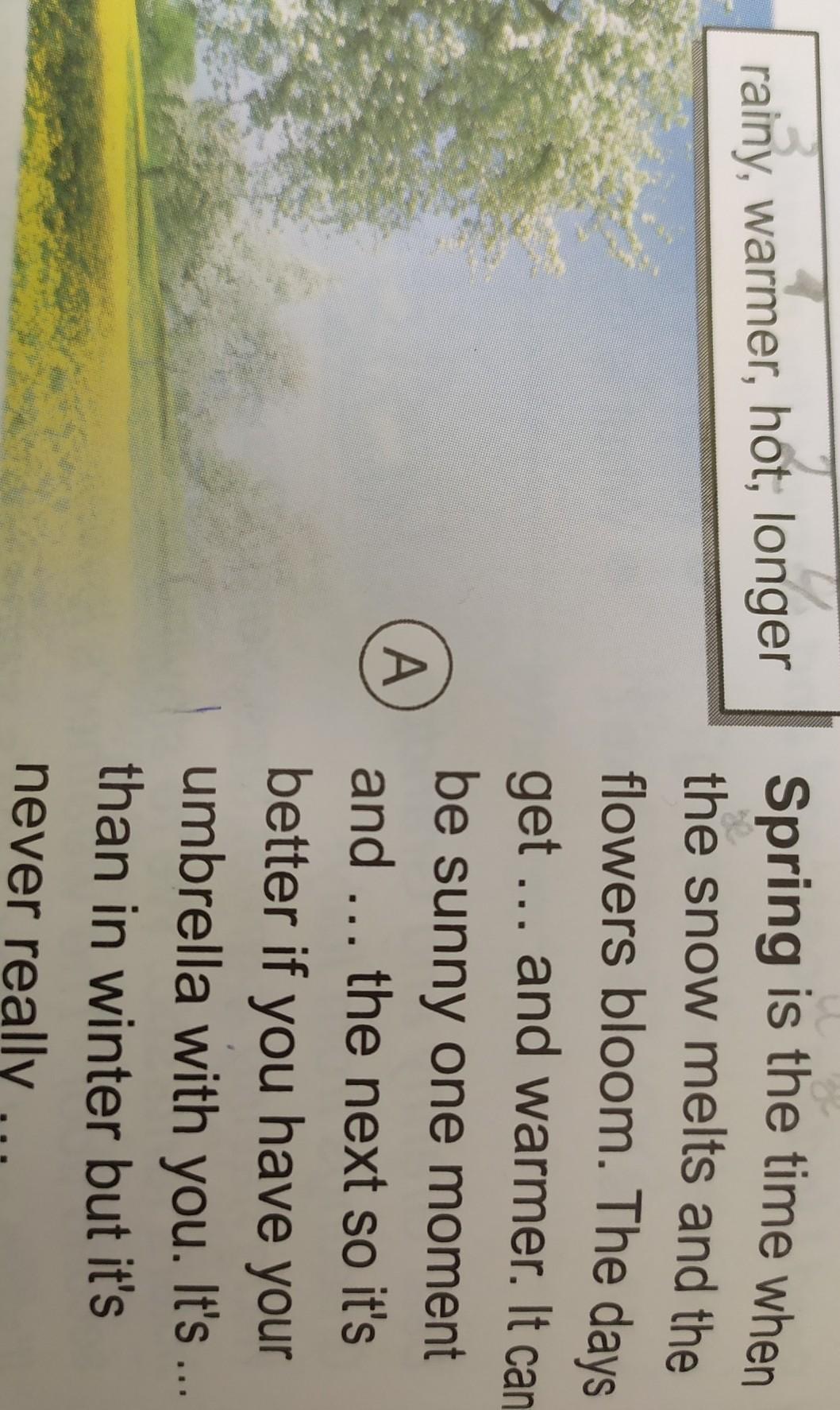 Спринг из зе тайм вэн зе сноу мэлтс энд зе флауерс блюм. зе дейс гэт уармер энд уармер. Ит кэн би сани ван момент энд хот зе некст соу итс бэтэр иф ю хэв юор амбрела уиз ю. Итс рэни зэн ин уинтер бат итс нэвэр риали лонгэр