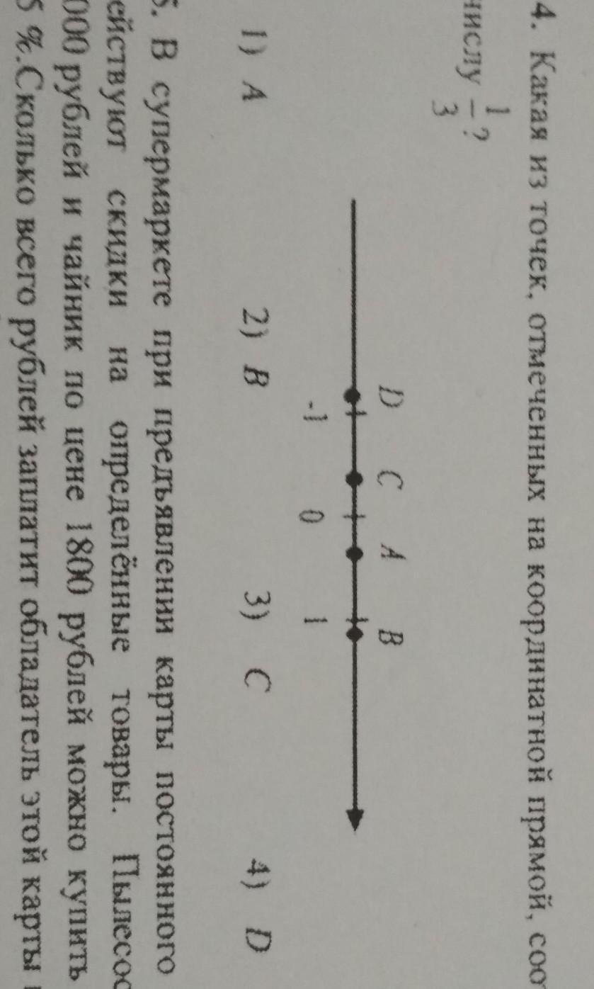 помогите пожалуйста. Какая из точек, отмеченных на координатной прямой,соответствует числу 1/3?