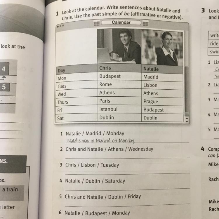 2)Chris and Natalie were in Athens on Wenday(вроде так)