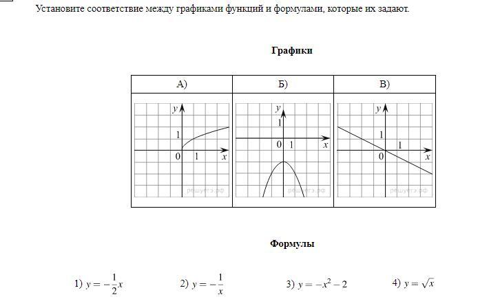 Установите соответствие между графиками функций и формулами, которые их задают.