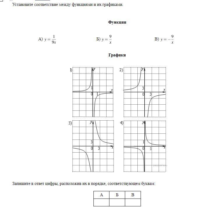 6Установите соответствие между графиками функций и формулами, которые их задают.