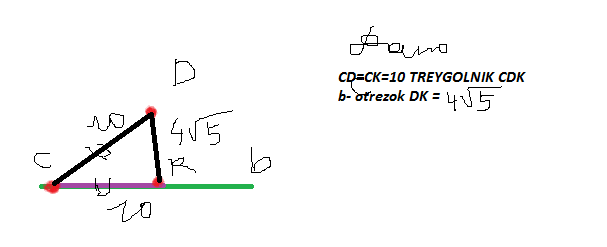 Точки С и К лежат в плоскости b, а точка D – вне её. Найдите расстояние от точки D до отрезка СК, если CD = CK =10 см, а DK = 4√5см