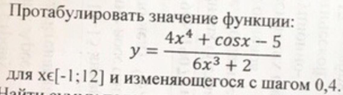 writeln('x = ',x,'; y = ',(4*x*x*x*x+cos(x)-5)/(6*x*x*x+2));