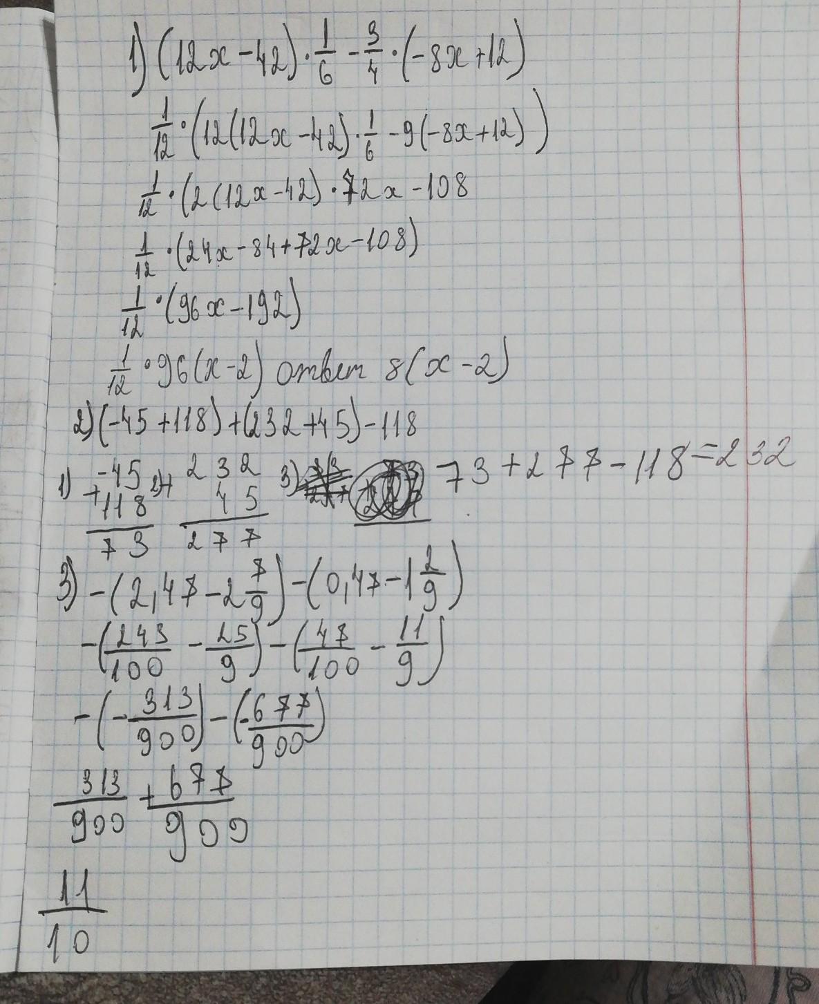 1) (12х-42)×1/6-3/4×(-8х+12)