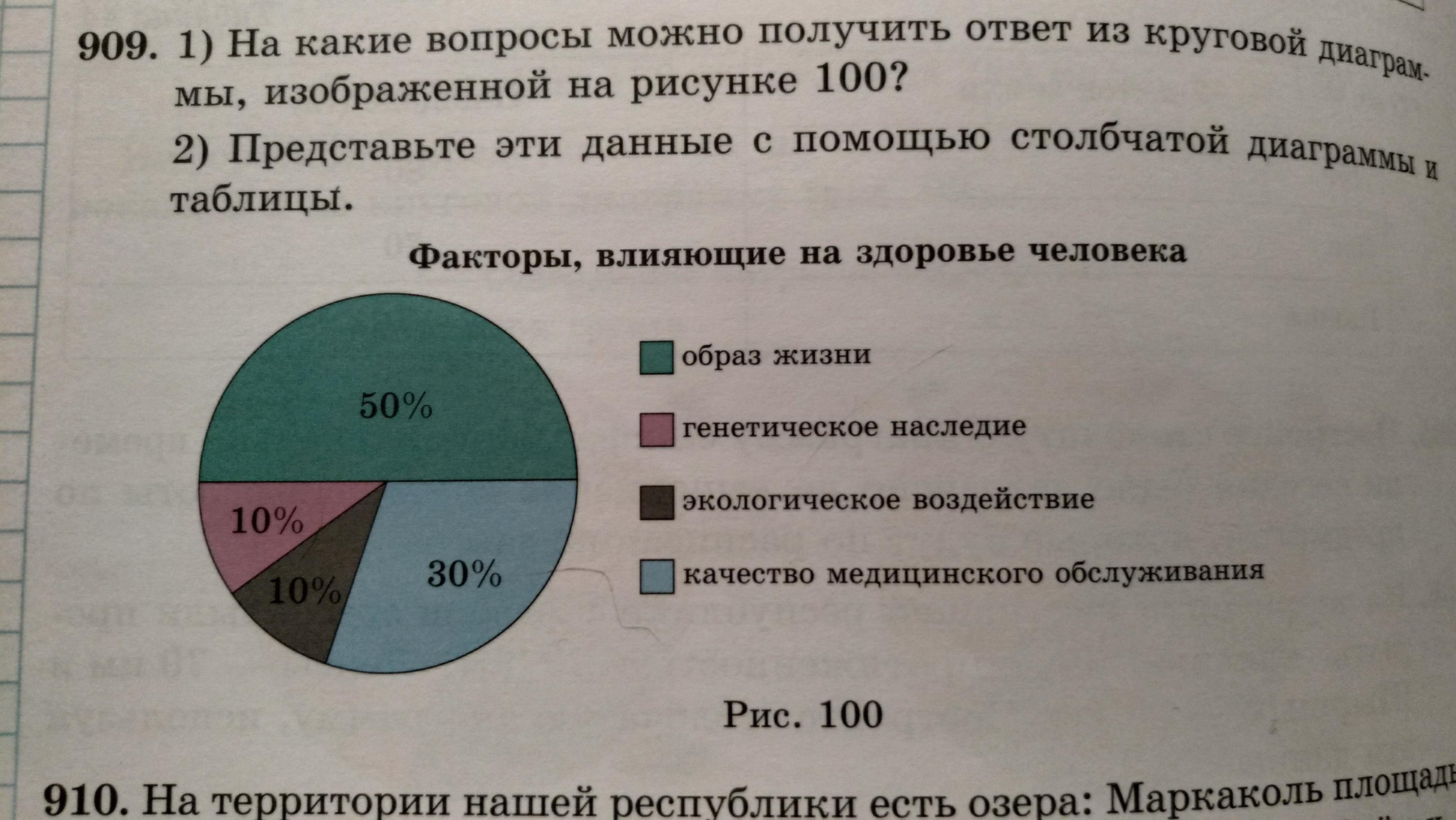 1) На какие вопросы можно получить ответ из круговой диаграммы, изображённой на рисунке 100?
