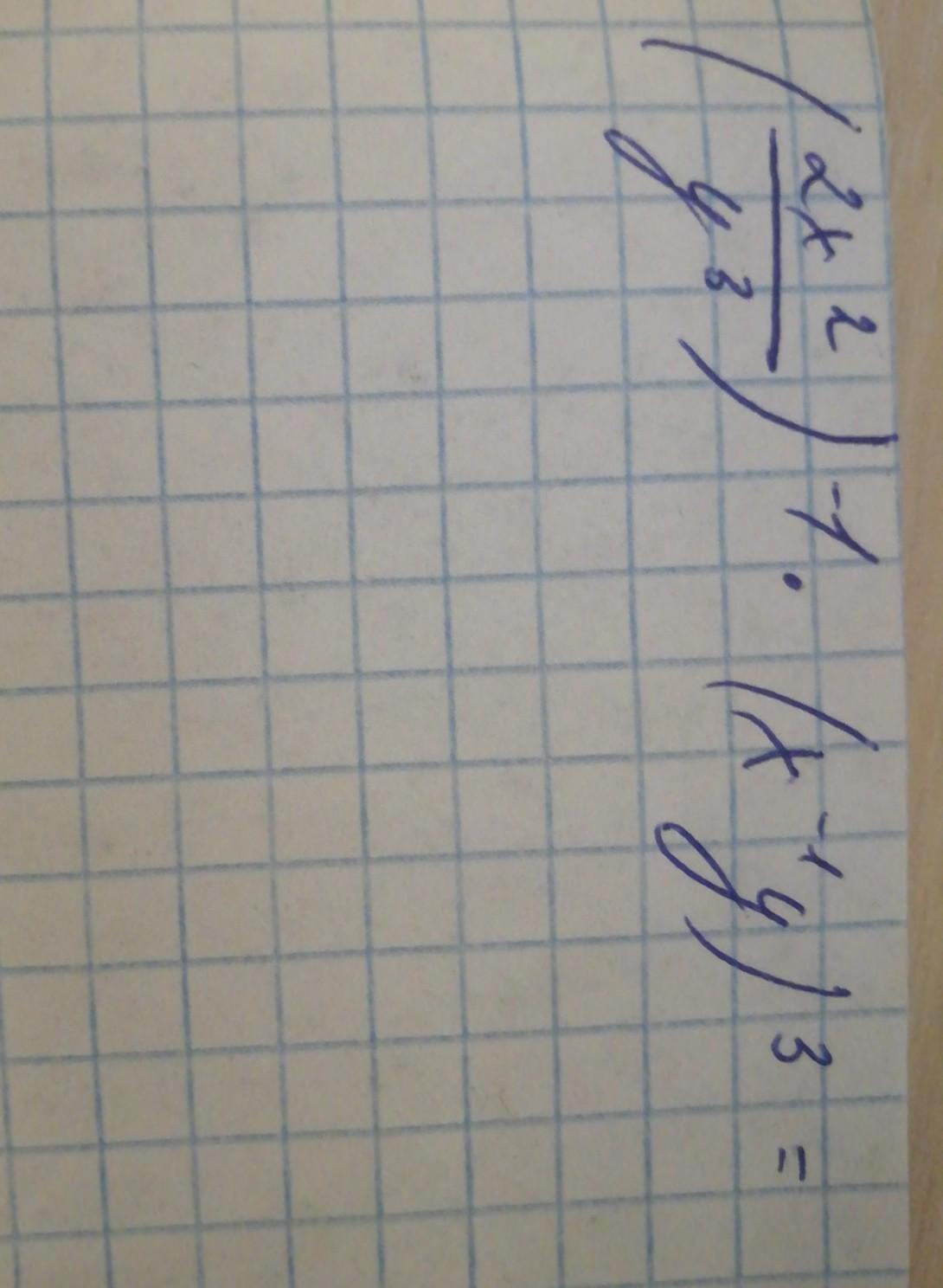 (frac{2x {}^{2} }{y {}^{3} } ) {}^{ - 1} ( {x}^{ - 1} y) {}^{3}  =  frac{y {}^{3} }{2x {}^{2} }  times x {}^{ - 3} y {}^{3}  =  frac{y {}^{3}  times  y {}^{3}  }{2x {}^{5} }  =  frac{y {}^{6} }{2x {}^{5} }