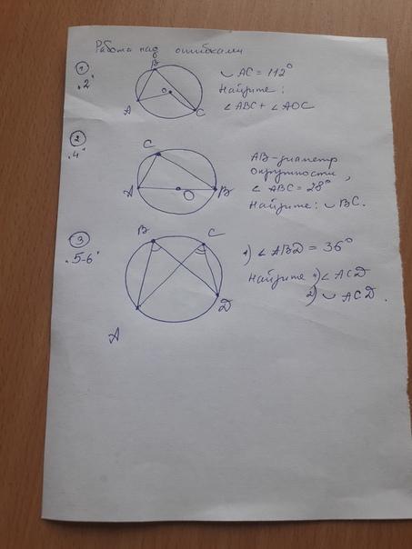 Решение: Рассмотрим рисунок, на нём видно, что угол ABC - это вписанный угол опирающийся дуге AC, а так же видим, что угол AOC является центральным, а так как центральный угол равен дуге на которую опирается, следует, что AOC = 112 градусов. Угол ABC = 112/2 = 56 градусов.