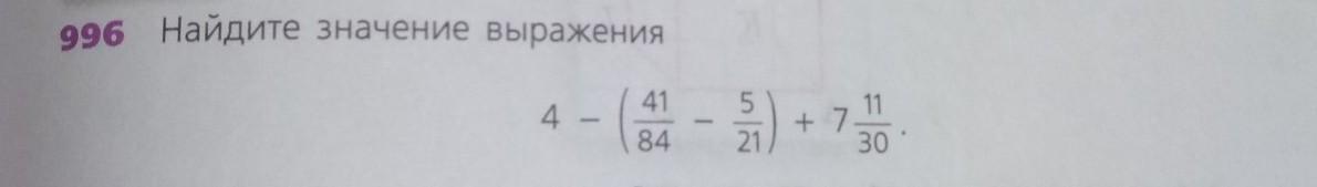 (4-(frac{41}{84}-frac{5}{21})+7frac{11}{30}=4-(frac{41}{84}-frac{20}{84})+7frac{11}{30}=4-frac{41-20}{84}+7frac{11}{30}=4-frac{21}{84}+7frac{11}{30}=11frac{11}{30}-frac{1}{4}=11frac{22}{60}-frac{15}{60}=11frac{7}{60})
