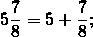 Дробь называется смешанной , если в ней есть целая часть(5) и сама дробная часть ( семь восьмых )