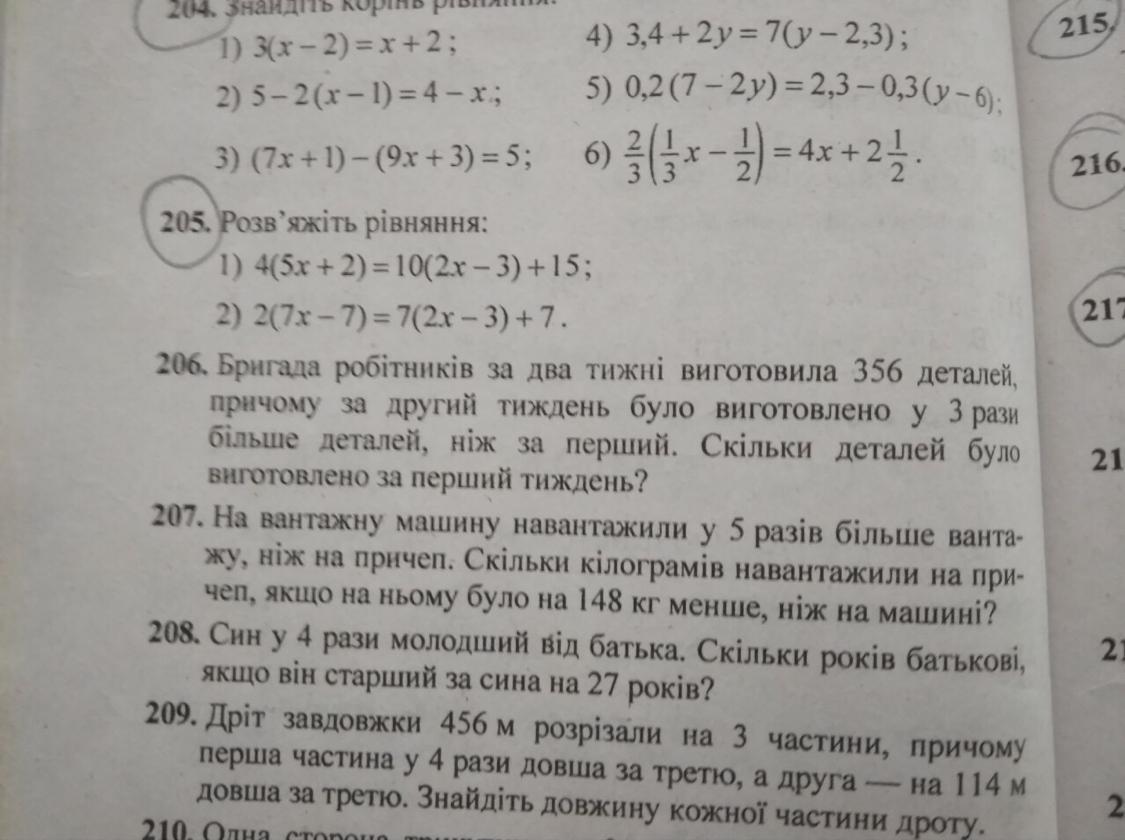 За перший тиждень було виготовлено х деталей,за другой тиждень було виготовлено 3х деталей,а всего за два тижнi 356.