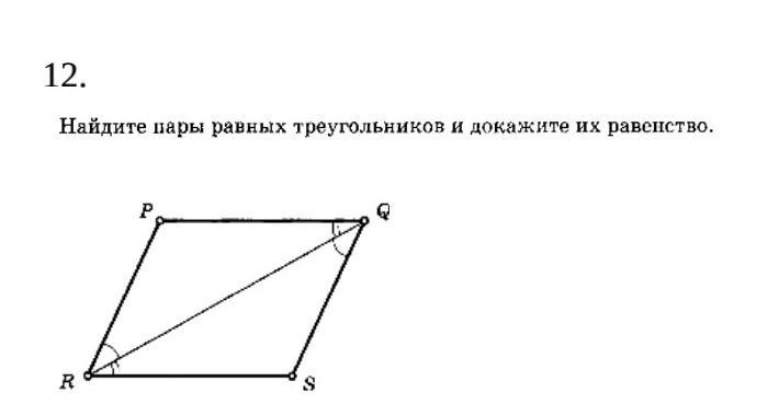 Равные углы-RPQ=RSQ они равны по второму признаку равенства треугольников (по стороне RQ и 2 углам)