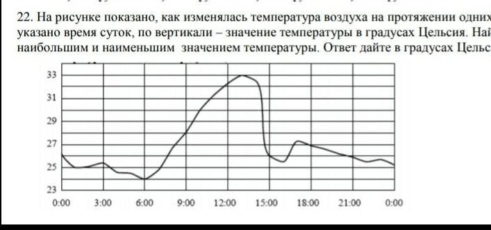 на рисунке показано как изменялась температура воздуха на протяжении одних суток.По горизонтали указано время суток,по вертикали значение