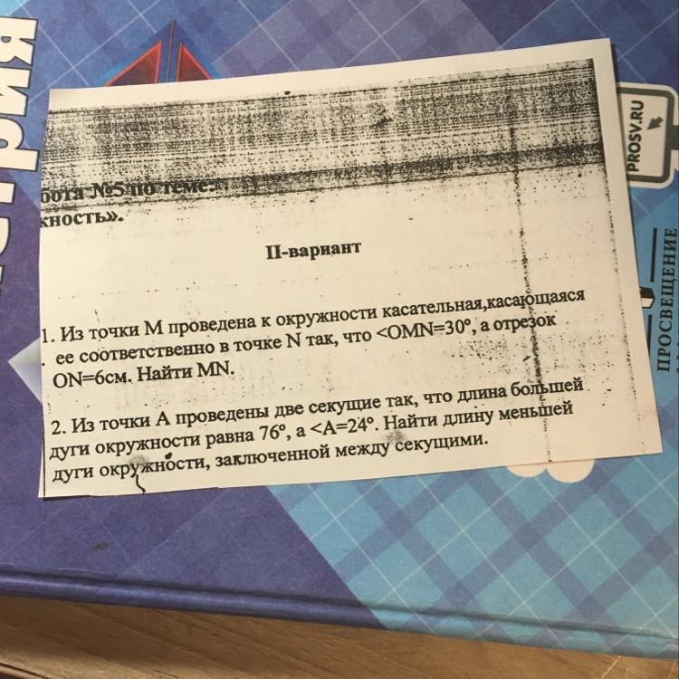 1. Радиус ОN перпендикулярен касательной МN, т.к. проведен в точку касания N.