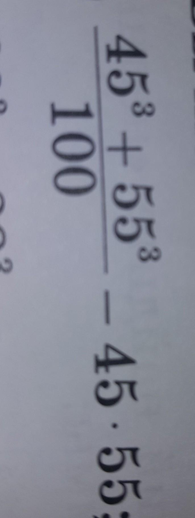 (45³+55³ )/100 - 45 *55 = (100* (45²- 45*55 +55²))/100 - 45*55 =