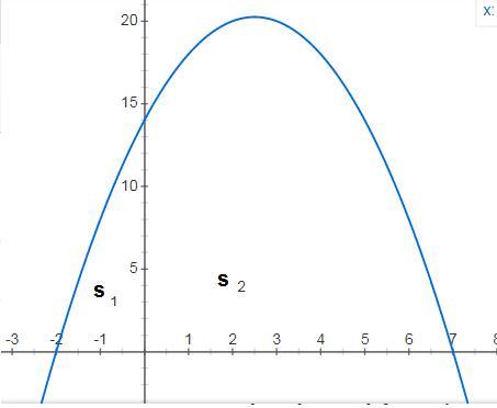 S₁=-∫(5x+14-x^2)dx=-[(5x²/2)+14x-(x³/3)]=-[(5*4/2)-14*2+8/3]=