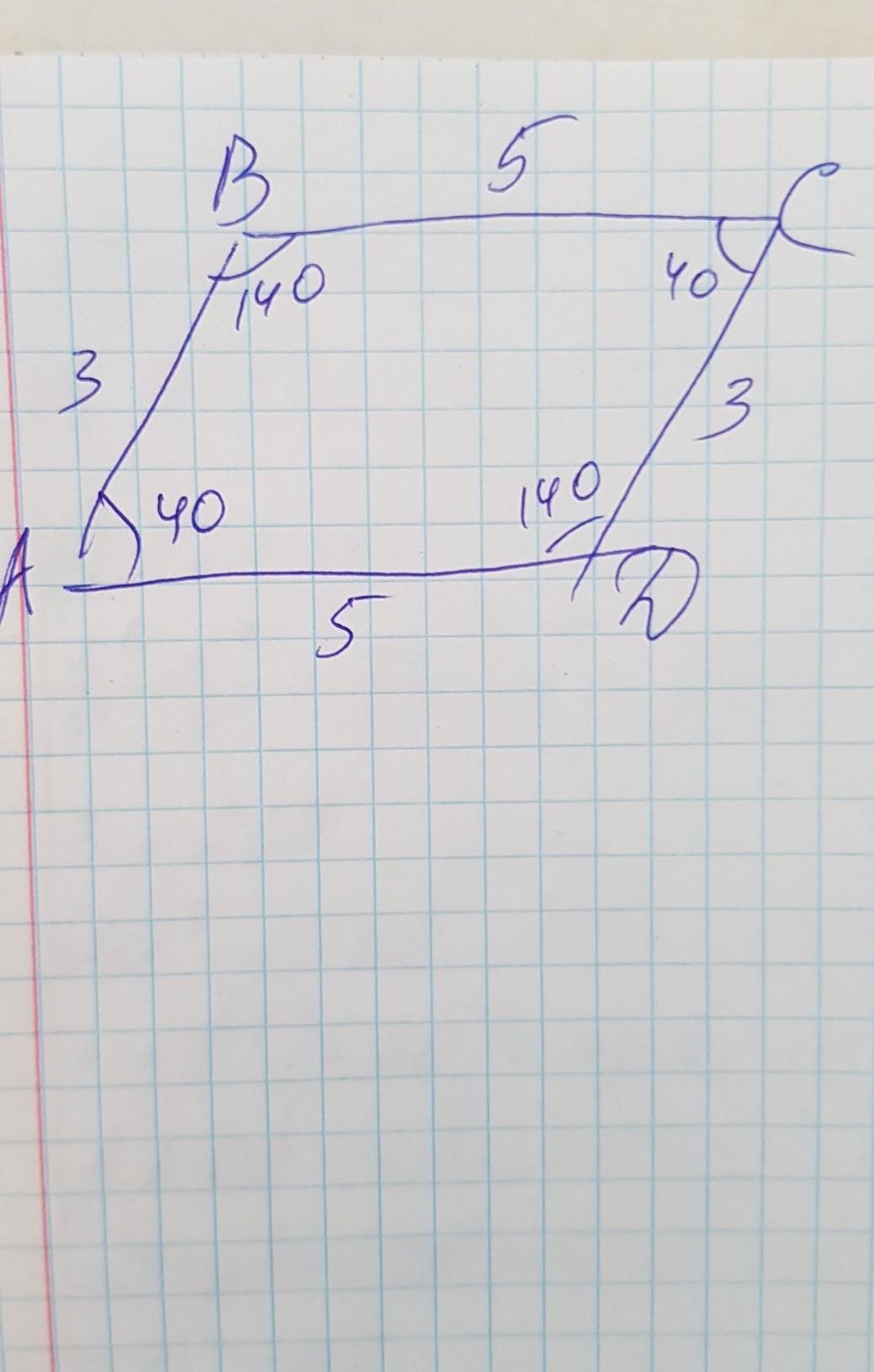 угол B140 градусов. Угол C 40 градусов. Угол D 140 градусов.