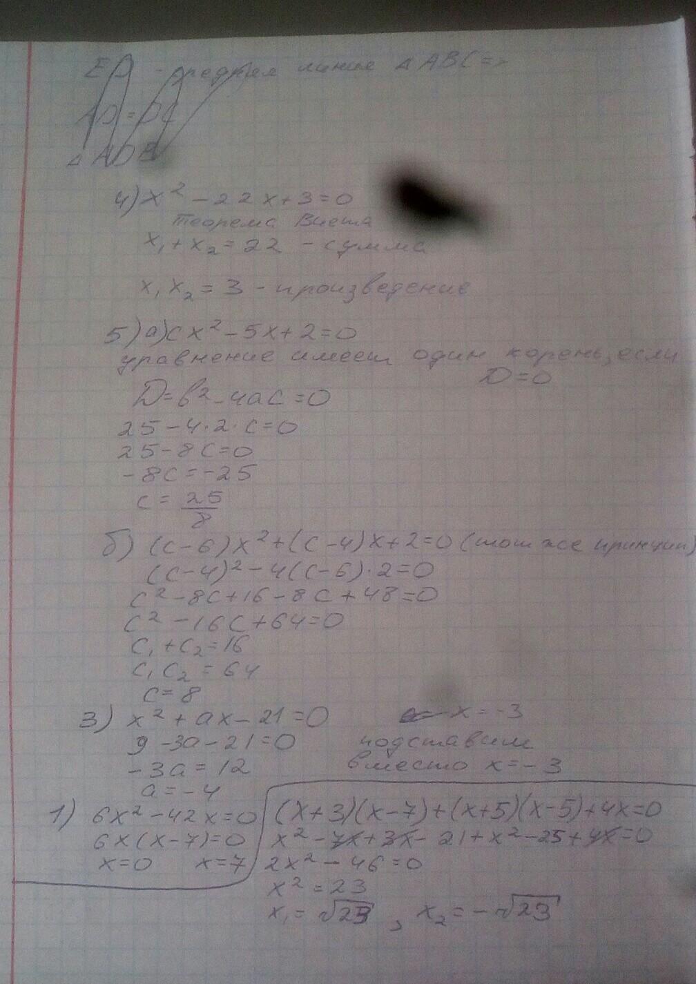 3) При каком значении а число -3 является корнем уравнения х2 + ах – 21 = 0?