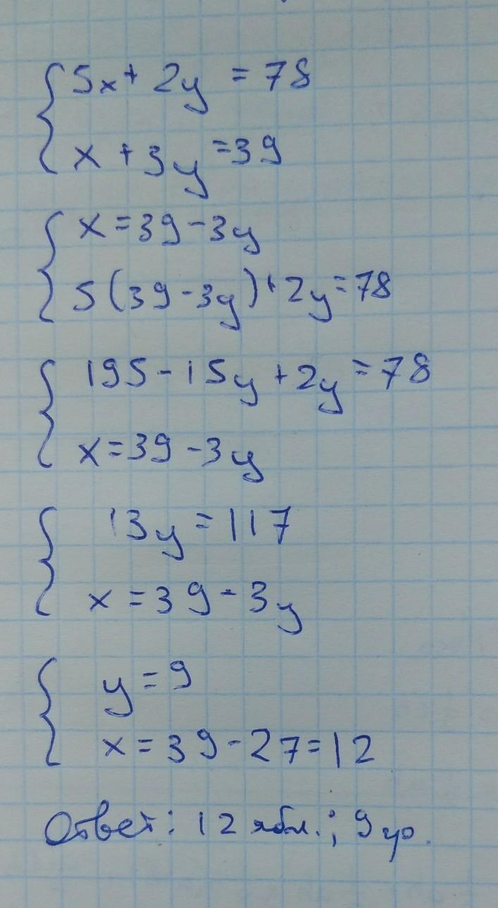 За 5 кг винограда и 2 кг груш заплатили 78 гривен. За 1 кг винограда и 3 кг груш заплатили 39 гривен. Найдите стоимость 1 кг груш и 1 кг винограда.