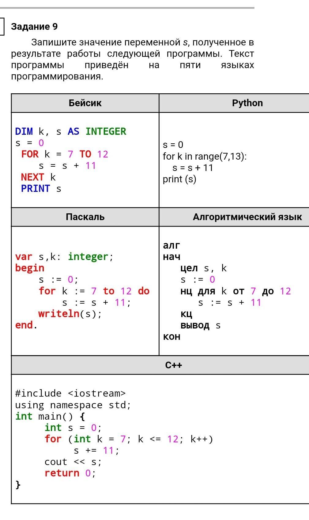 Всего к S добавится : 11*6=66, S=0+66 = 66